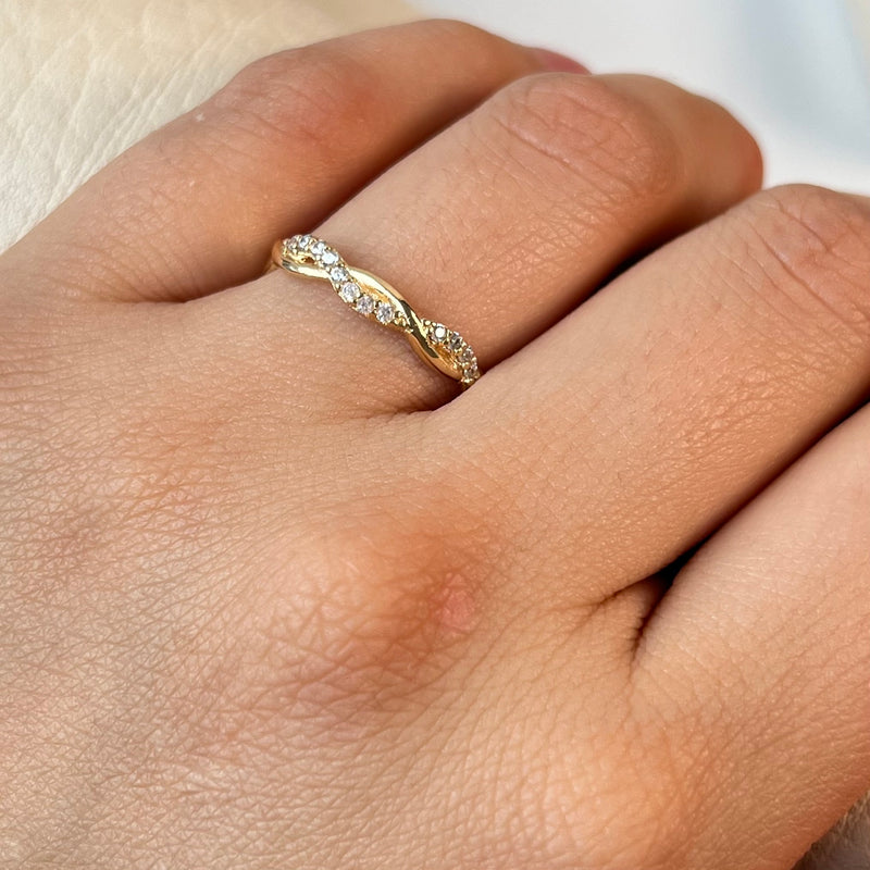 ANILLO ENTRELAZADO CIRCONES BLANCOS ORO AMARILLO 18K / TALLA 7/1/4 / +2 / 1,75GR / 1,5 MM