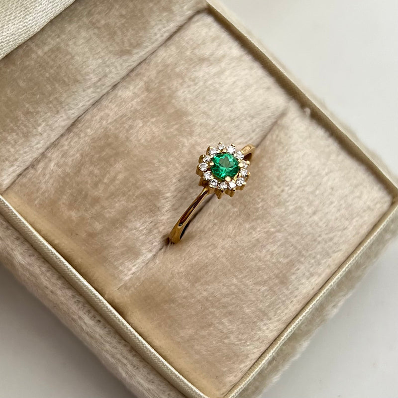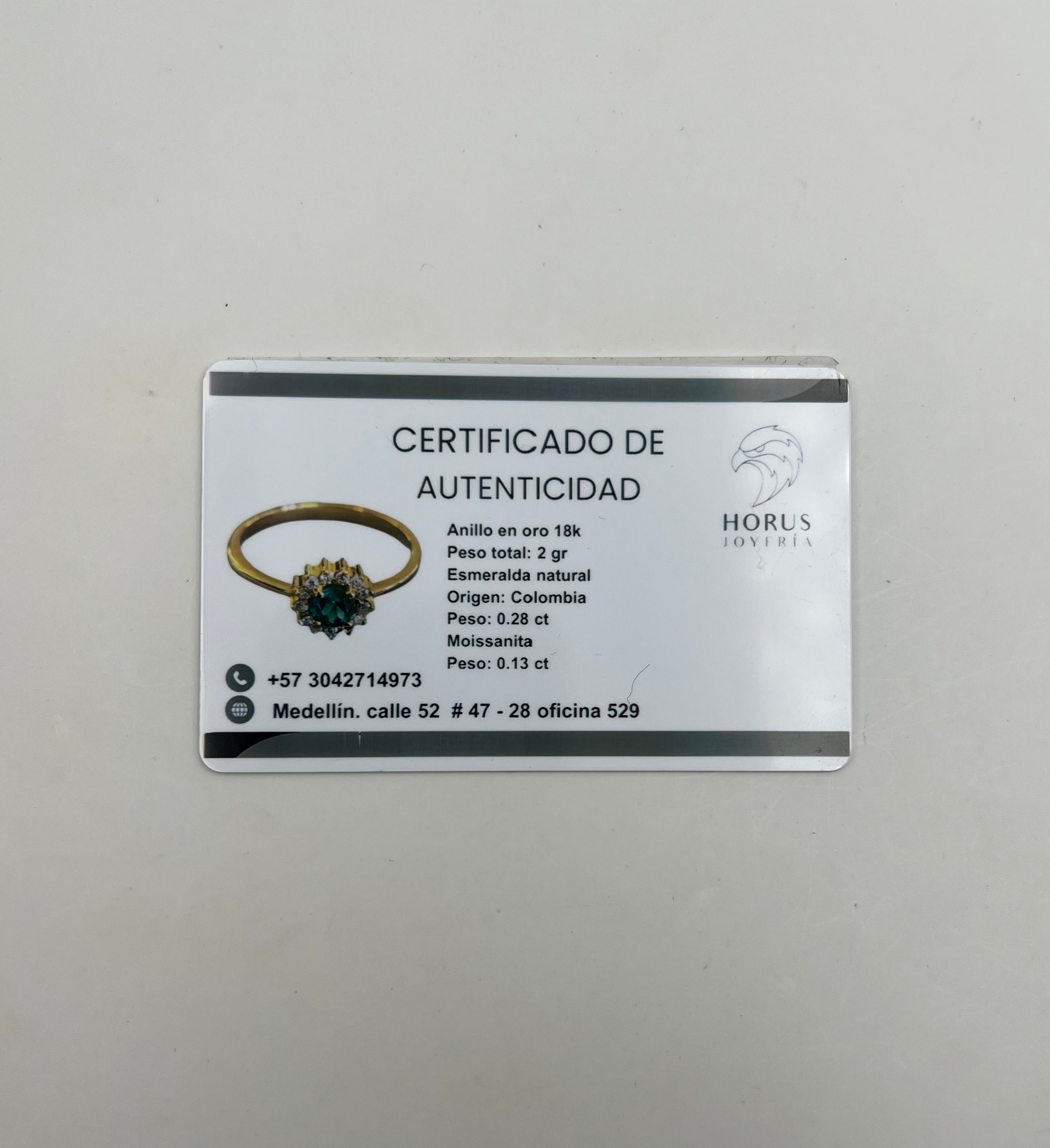 ANILLO ESMERALDA 0.28 CT Y MOISSANITA 0.13 CT ORO AMARILLO 18K / TALLA 6 / 2 GR