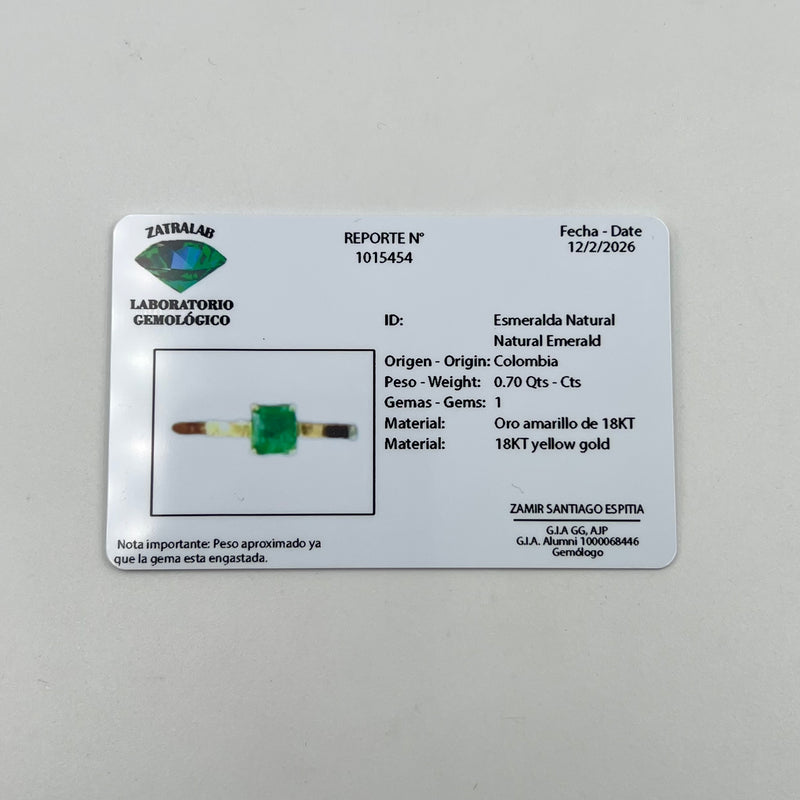 ANILLO ESMERALDA 0.70 CT ORO AMARILLO 18K / TALLA 6 / 2,68 GR (JOYA)
