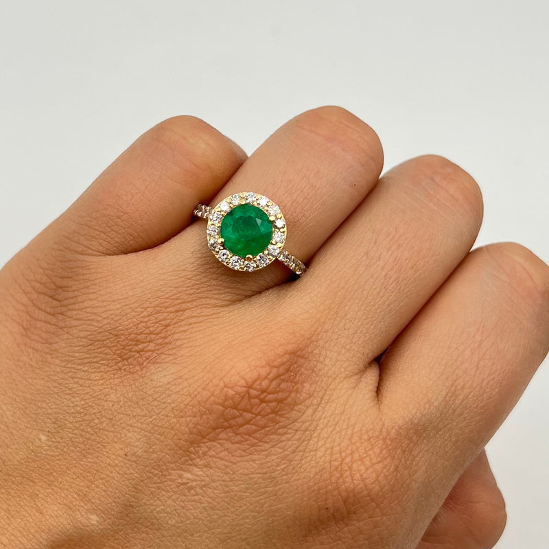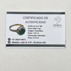 ANILLO ESMERALDA 1.61 CT Y DIAMANTE 0.72 CT ORO AMARILLO 18K / TALLA 6 / 3,96 GR