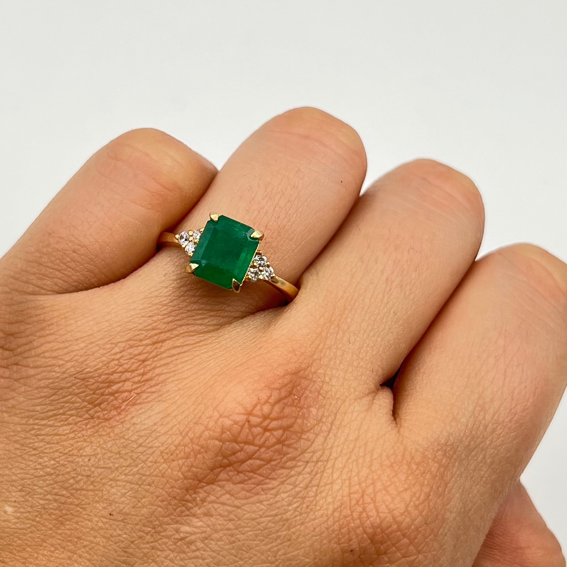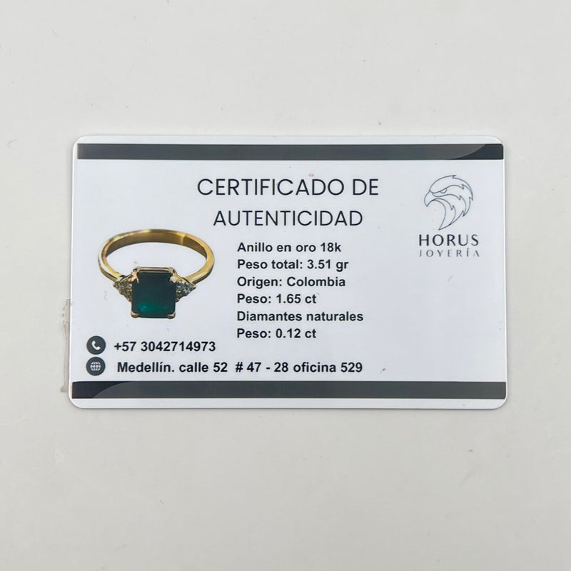ANILLO ESMERALDA 1.65 CT Y DIAMANTE 0.12 CT ORO AMARILLO 18K / TALLA 7 3/4 / 3,51 GR