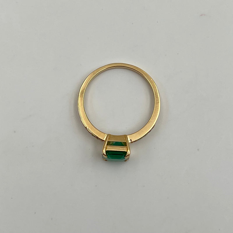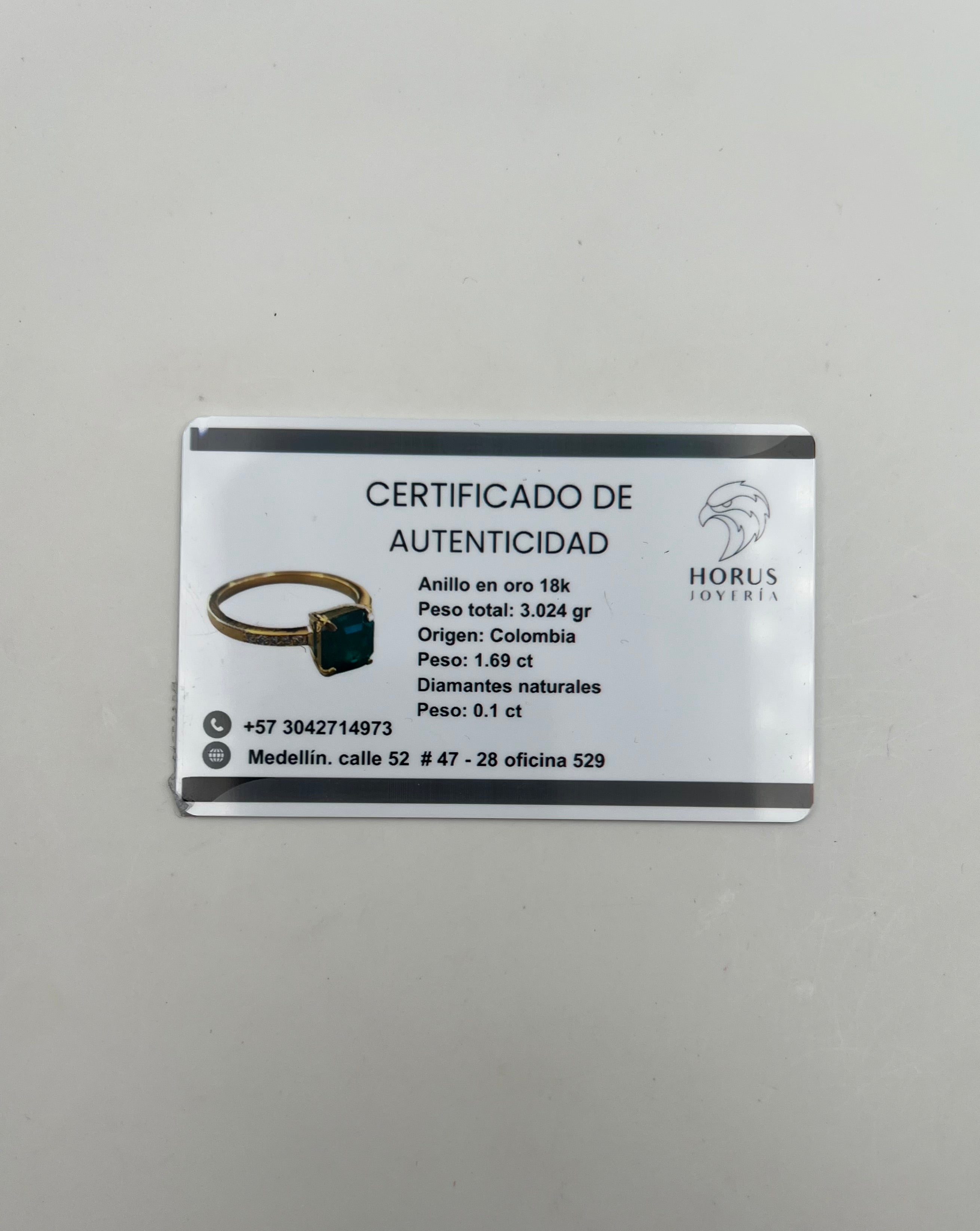 ANILLO ESMERALDA 1.69 CT Y DIAMANTE 0.1 CT ORO AMARILLO 18K / TALLA 7 3/4 / 3,02 GR