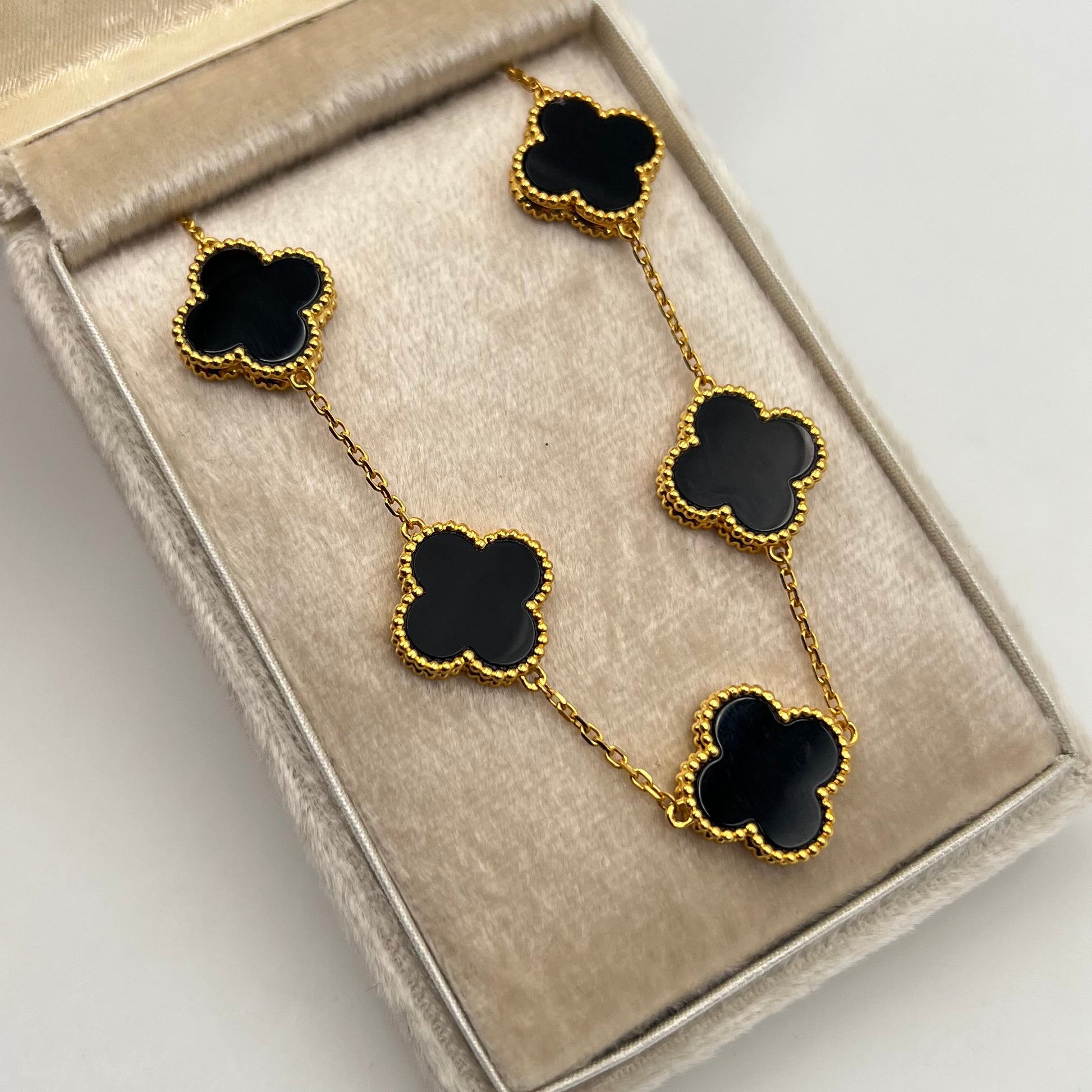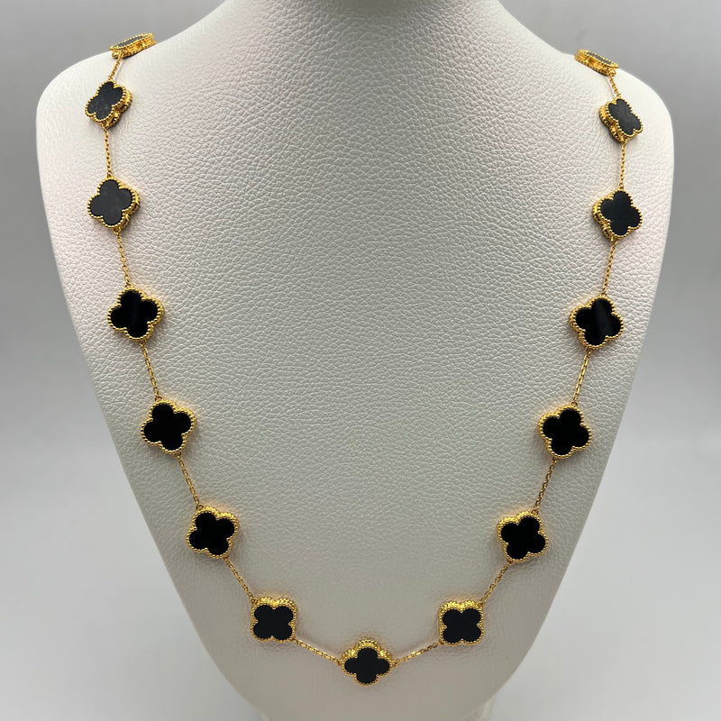 CADENA ITALY TREBOL NEGRO ORO AMARILLO 18K +4 / 22,58 GR / 15 MM / 70 CM