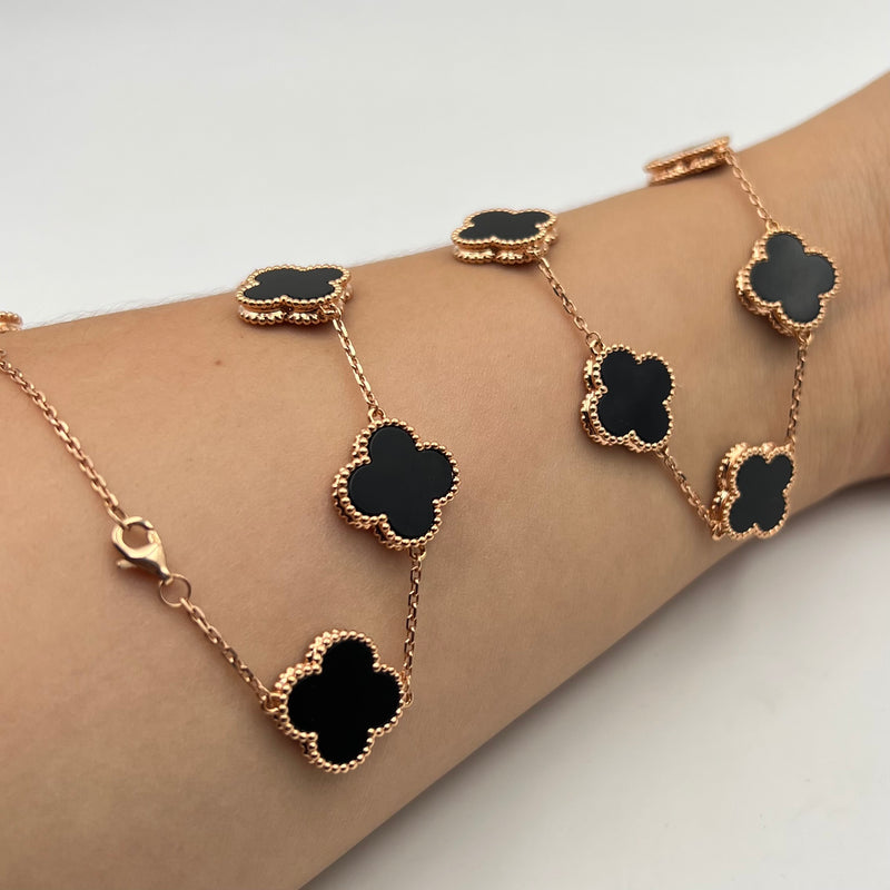 CADENA ITALY TREBOL NEGRO ORO ROSA 18K +4 / 22,5 GR / 15 MM / 70 CM