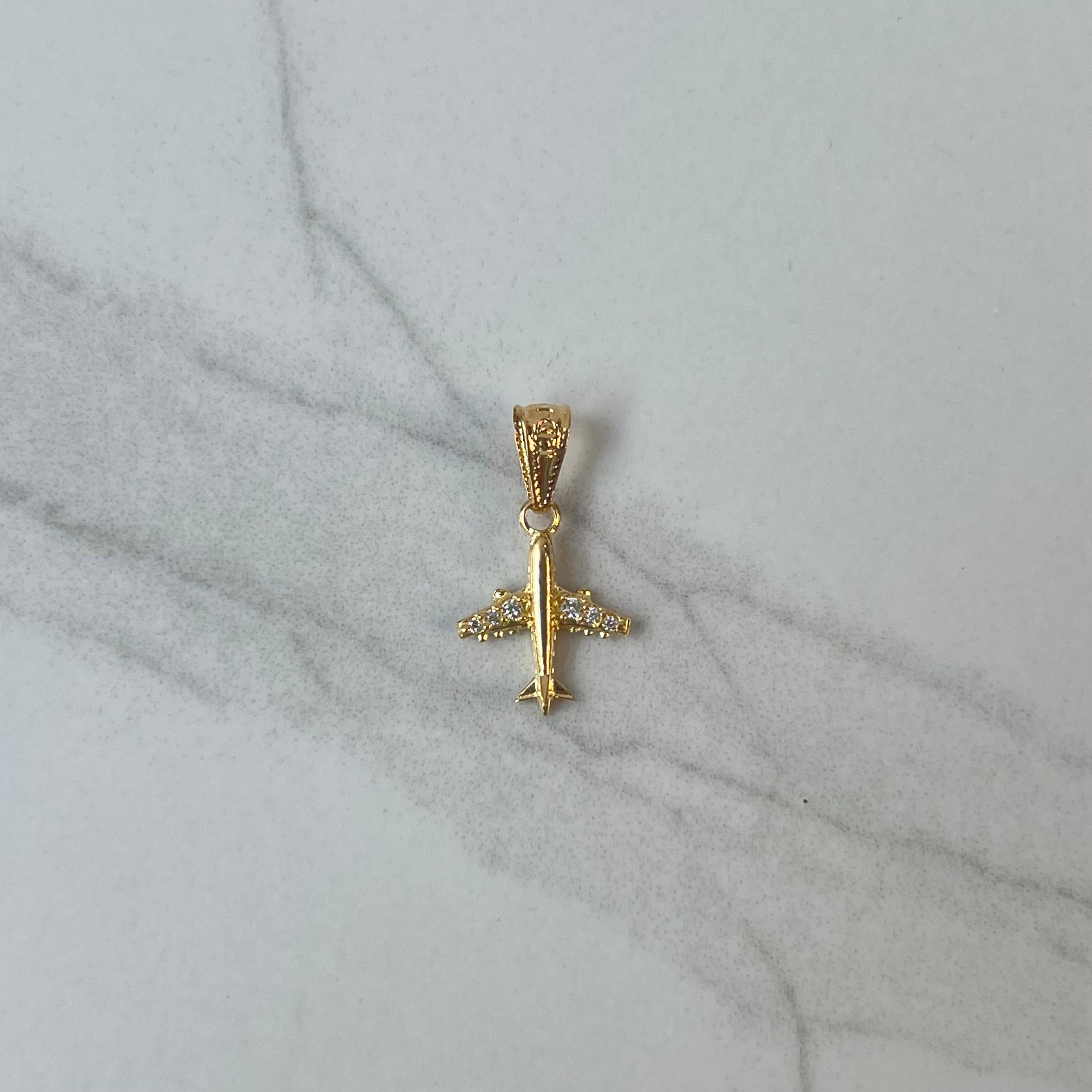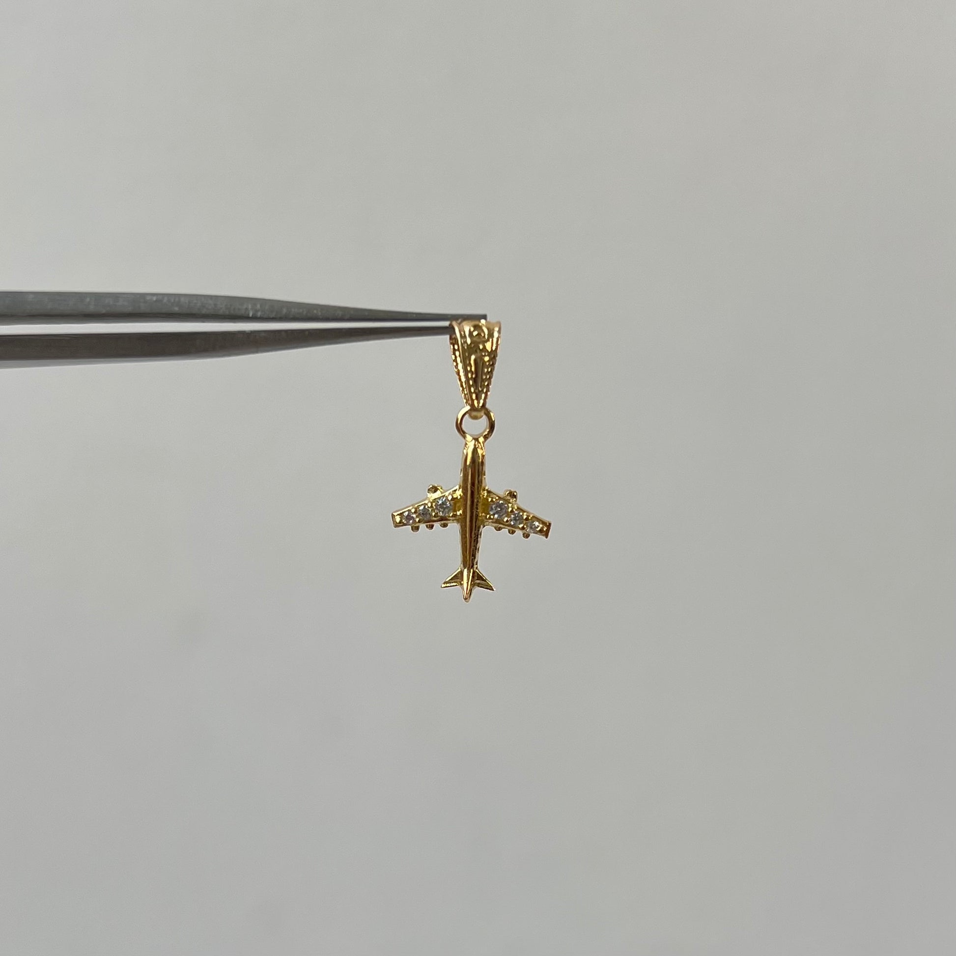DIJE AVION CON CIRCON BLANCO ORO AMARILLO 18K 0,57 GR / 10 MM / 1,3 CM