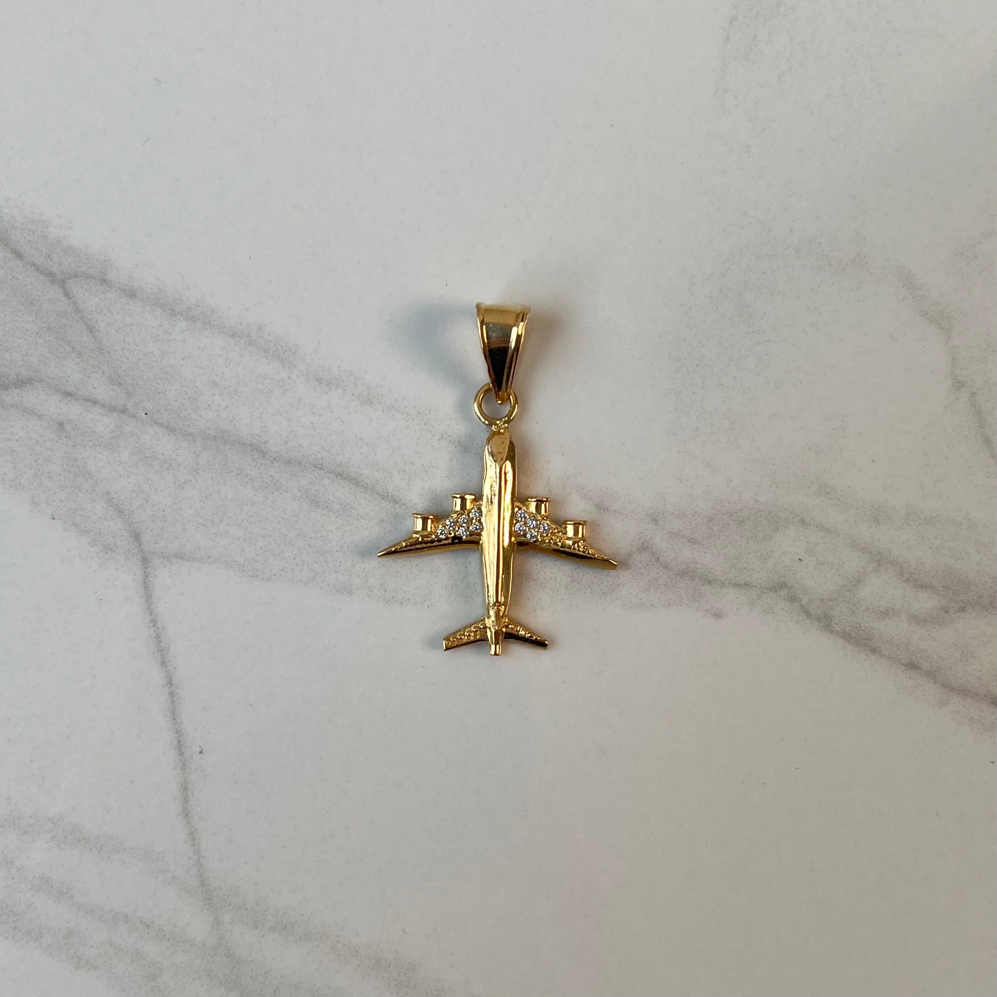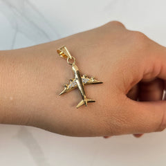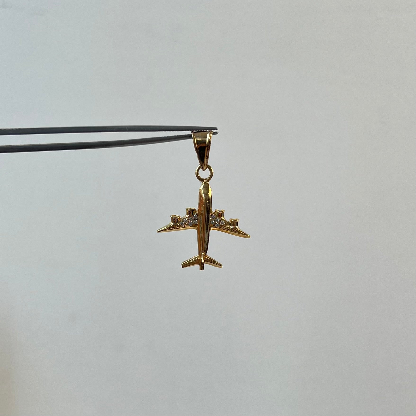 DIJE AVION CON CIRCONES ORO AMARILLO 18K 2,8 GR / 22 MM / 2,6 CM
