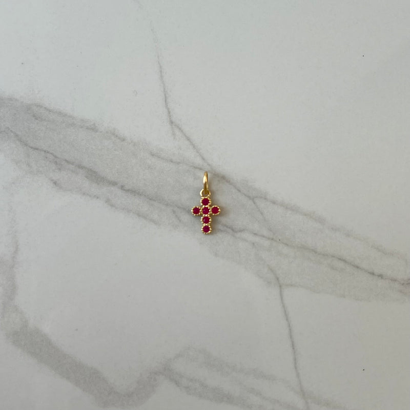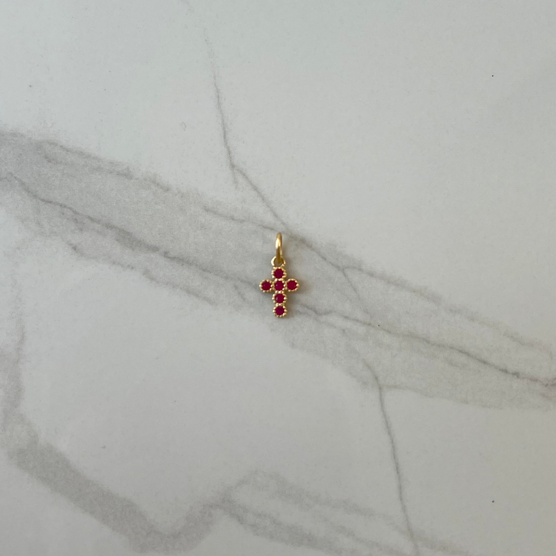 DIJE CRUZ FUCSIA ORO AMARILLO 18K 1 GR / 8 MM / 1,4 CM