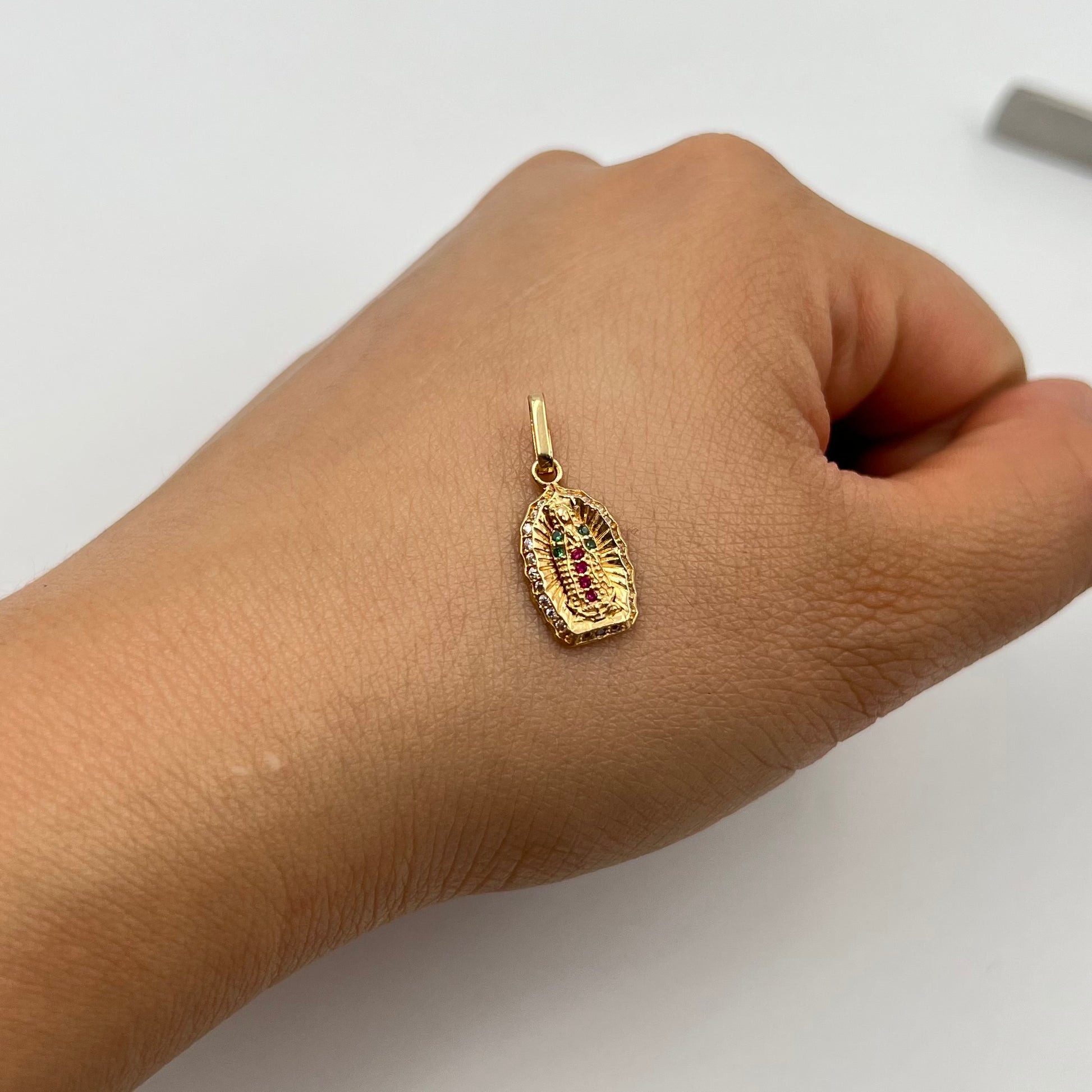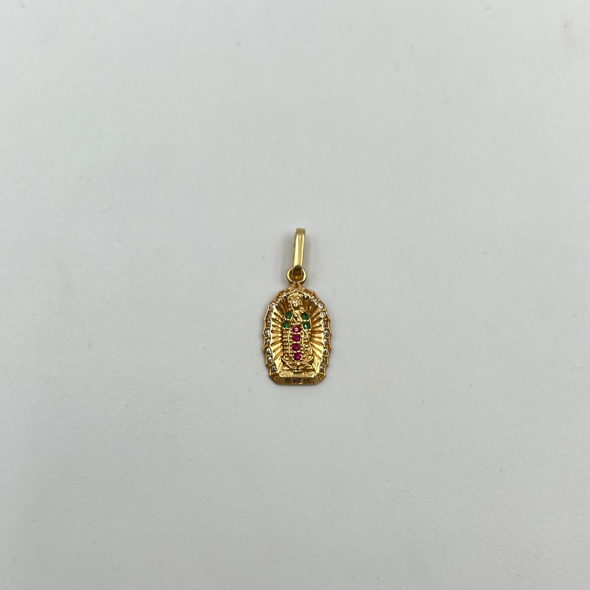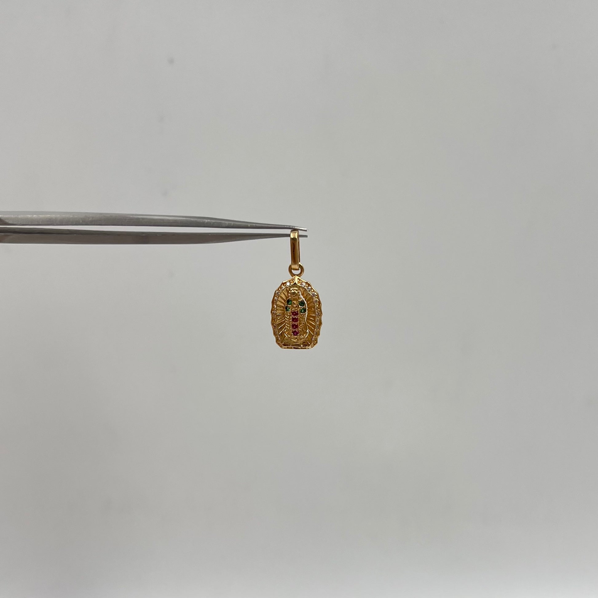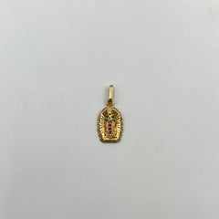 DIJE FIGURA GUADALUPE CIRCONES DE COLORES ORO AMARILLO 18K 1,19 GR / 9,3 MM / 1,6 CM