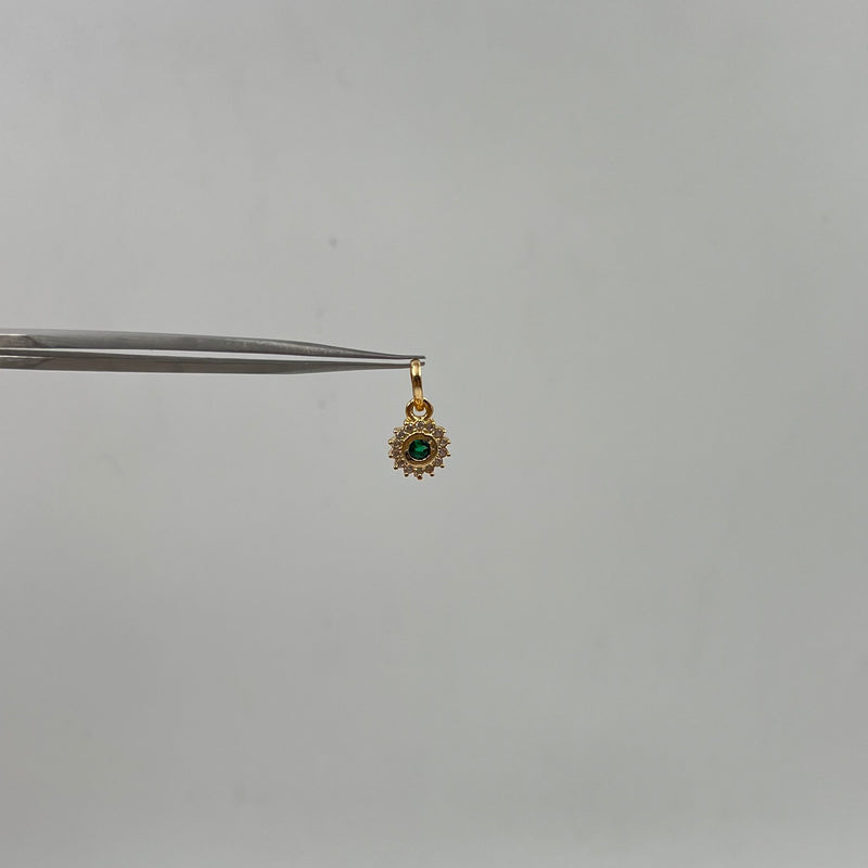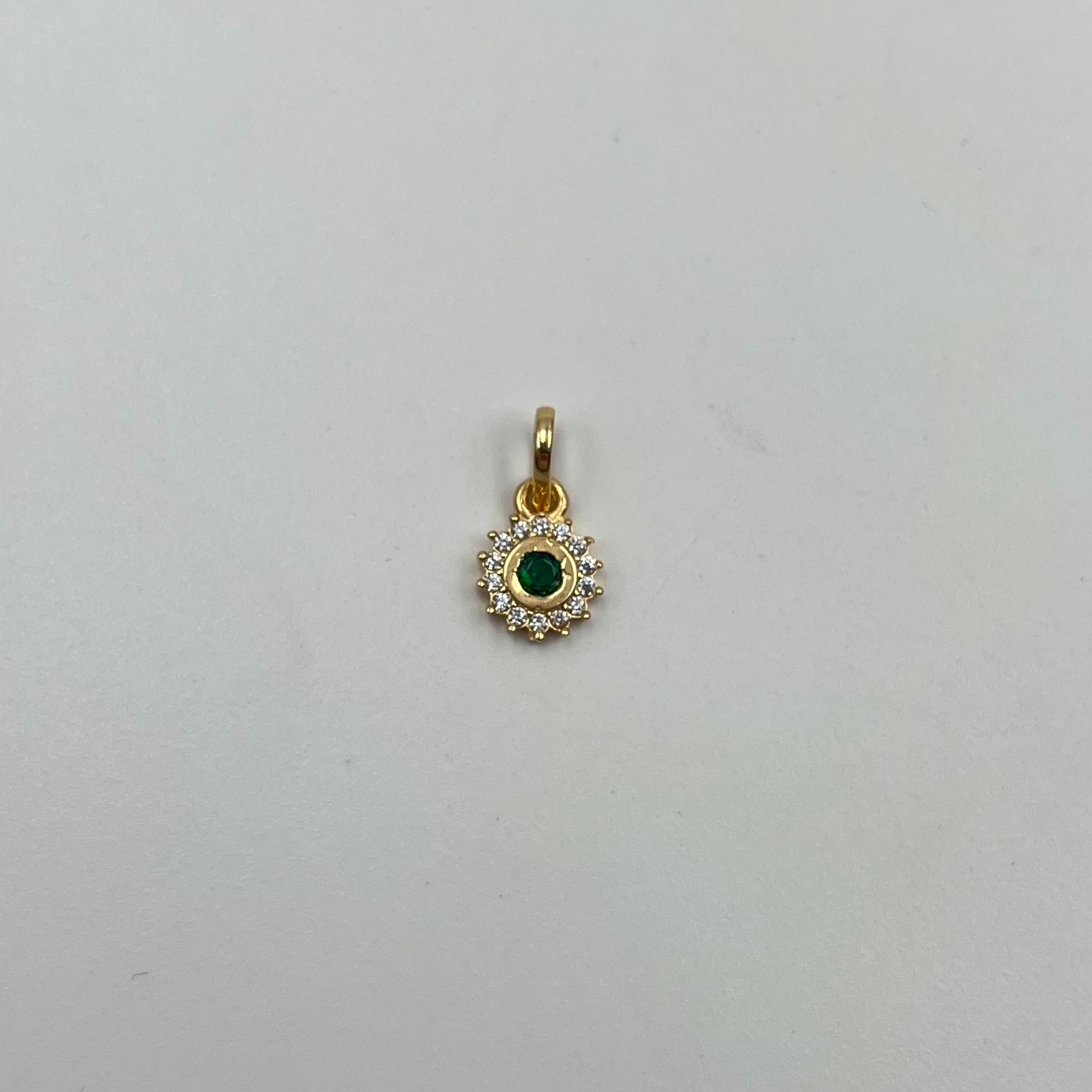 DIJE FLOR CIRCON VERDE Y CIRCONES BLANCOS ORO AMARILLO 18K 1,33 GR / 8,9 MM / 1,1 CM