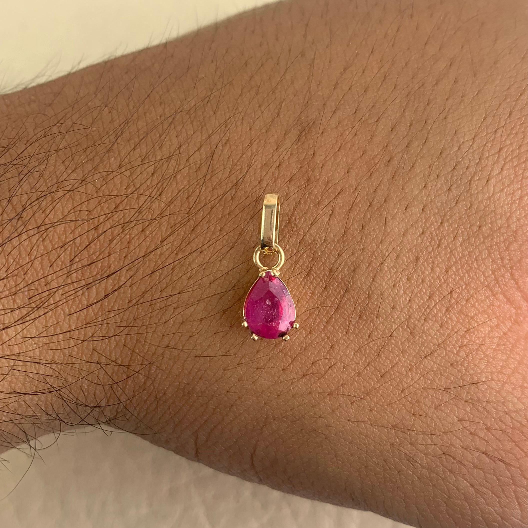 DIJE LAGRIMA / 1.5 CT RUBI ORO AMARILLO 18K 0,95 GR / 7 MM / 11 CM