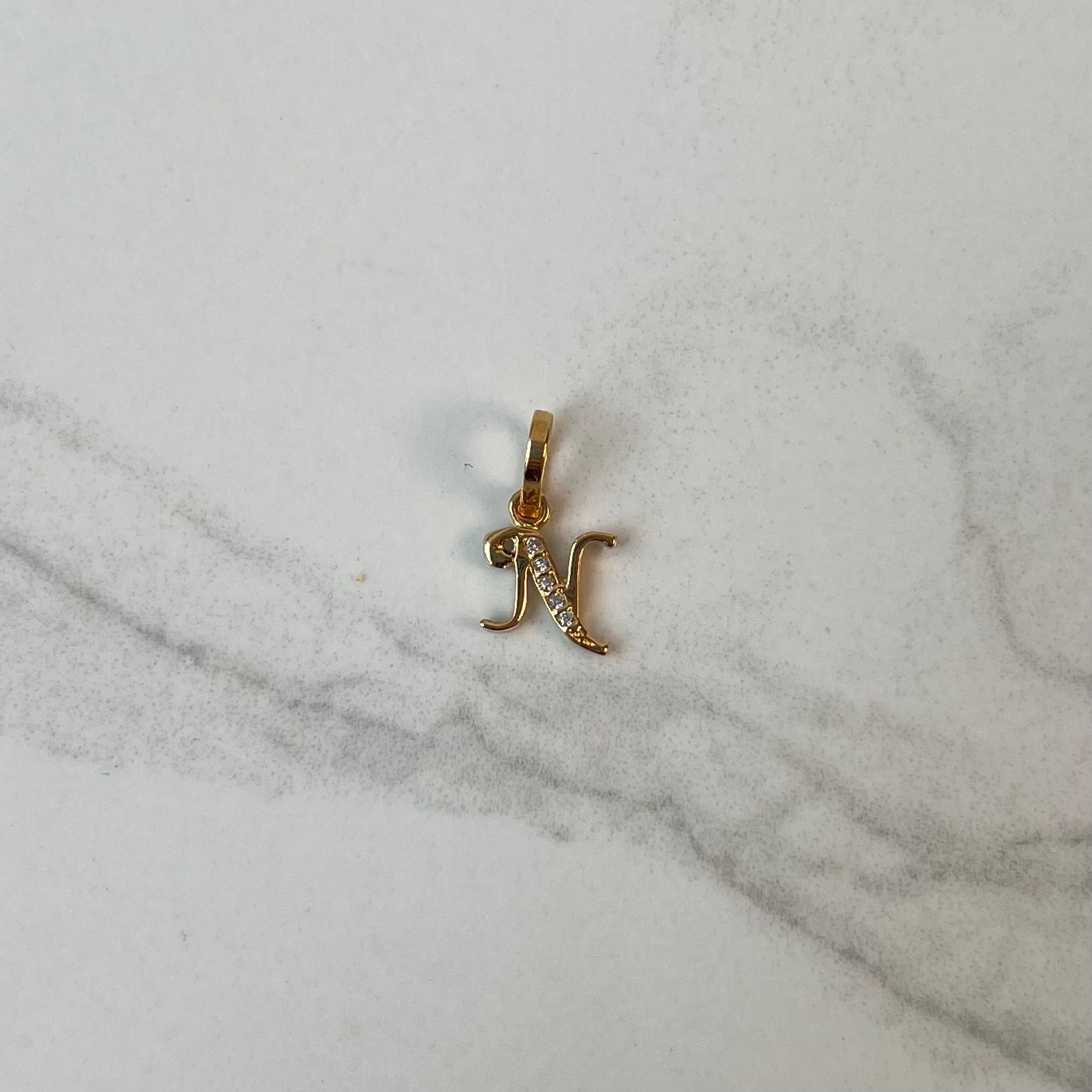 DIJE LETRA N CON CIRCON ORO AMARILLO 18K 0,68 GR / 8 MM / 1 CM