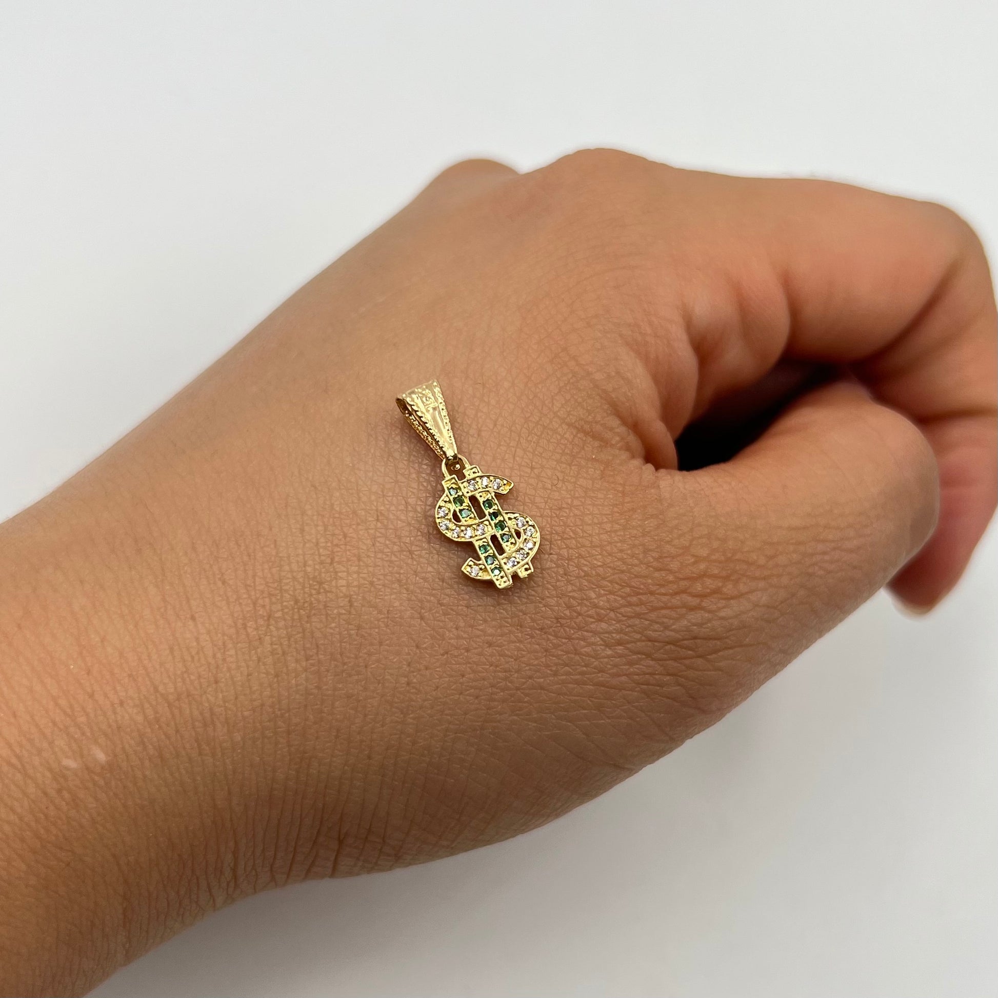DIJE SIGNO DE PESO CON CIRCONES ORO AMARILLO 18K 0,7 GR / 7 MM / 1,2 CM
