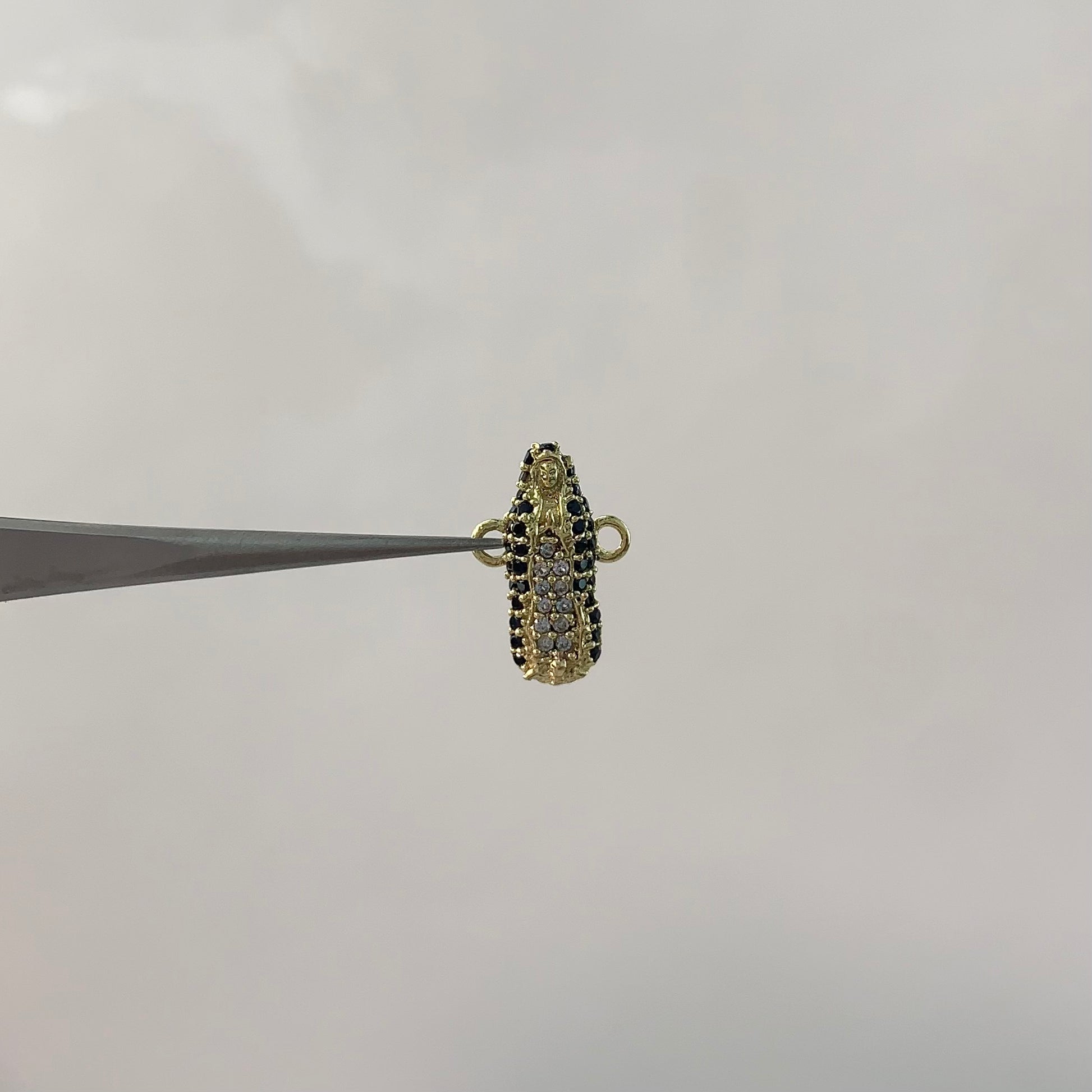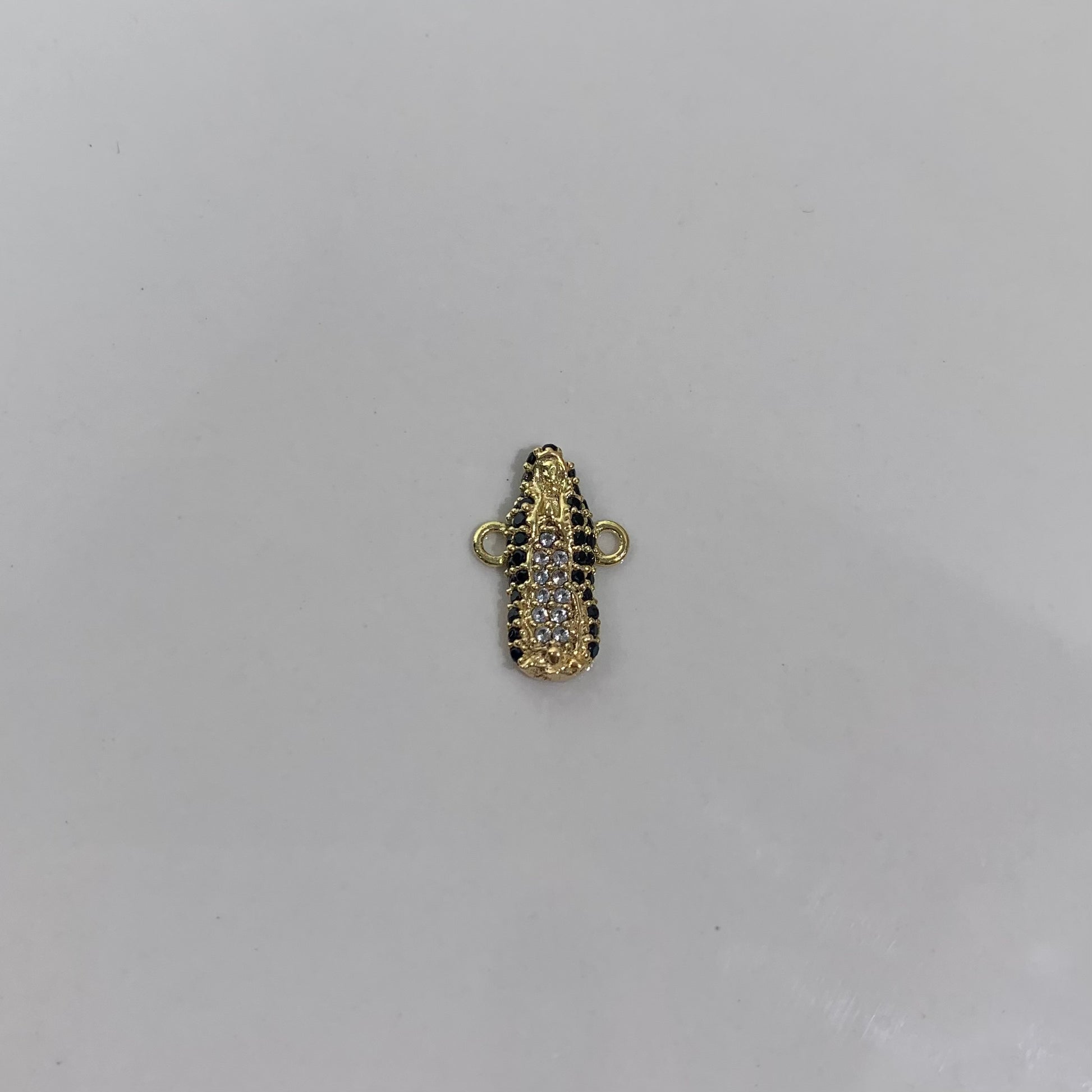 HERRAJE VIRGEN GUADALUPE / CIRCONES NEGROS - BLANCOS ORO AMARILLO 18K 1,1 GR / 1,4 CM