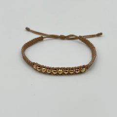 PULSERA TEJIDA BEIGE / BOLA DIAMANTADA 4MM