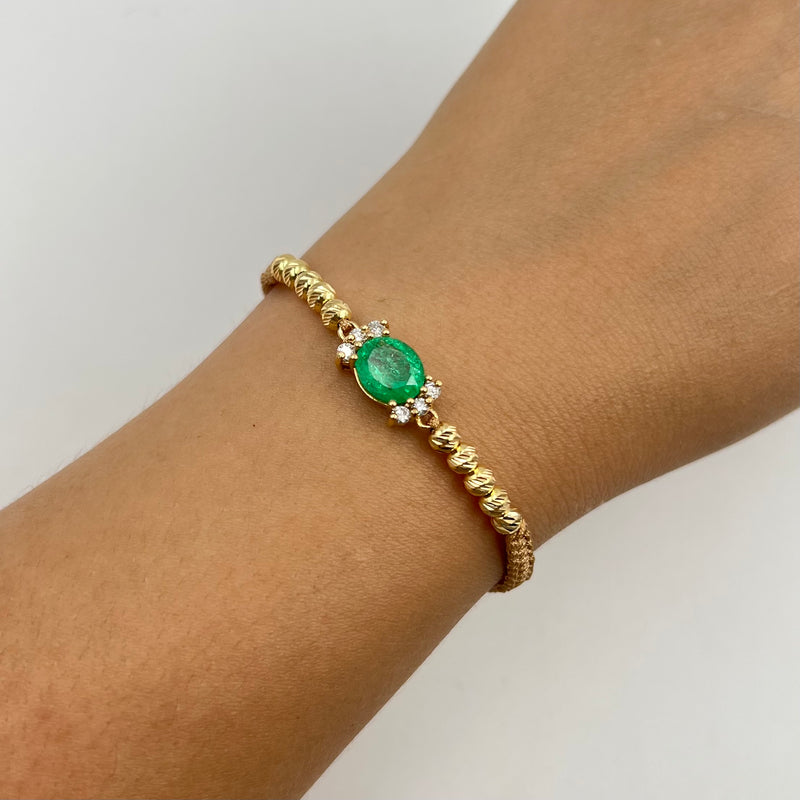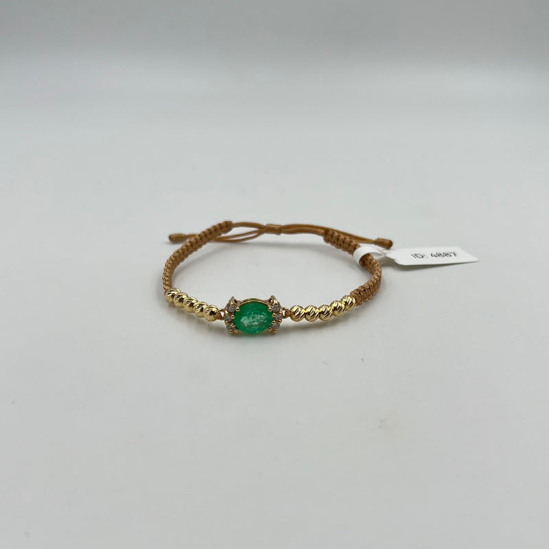 PULSERA TEJIDA DORADA / HERRAJE ESMERALDA 2,3 CT Y DIAMANTE 0,36 CT/ BOLA DIAMANTADA 4MM / 1,02 GR (JOYA)