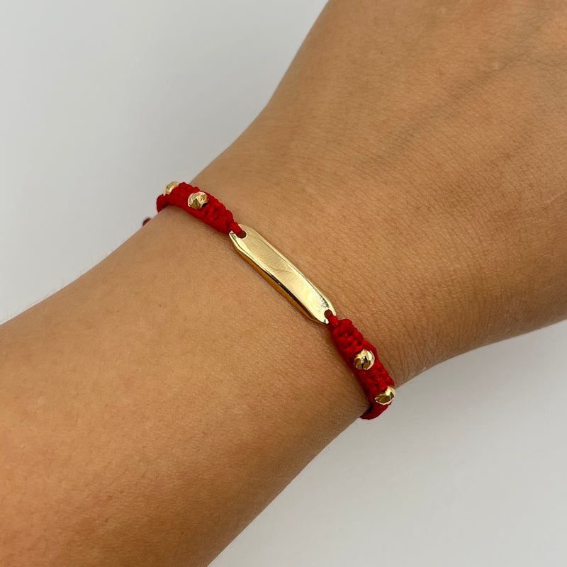 PULSERA TEJIDA ROJA / PLACA / BOLA DIAMANTADA 4 MM