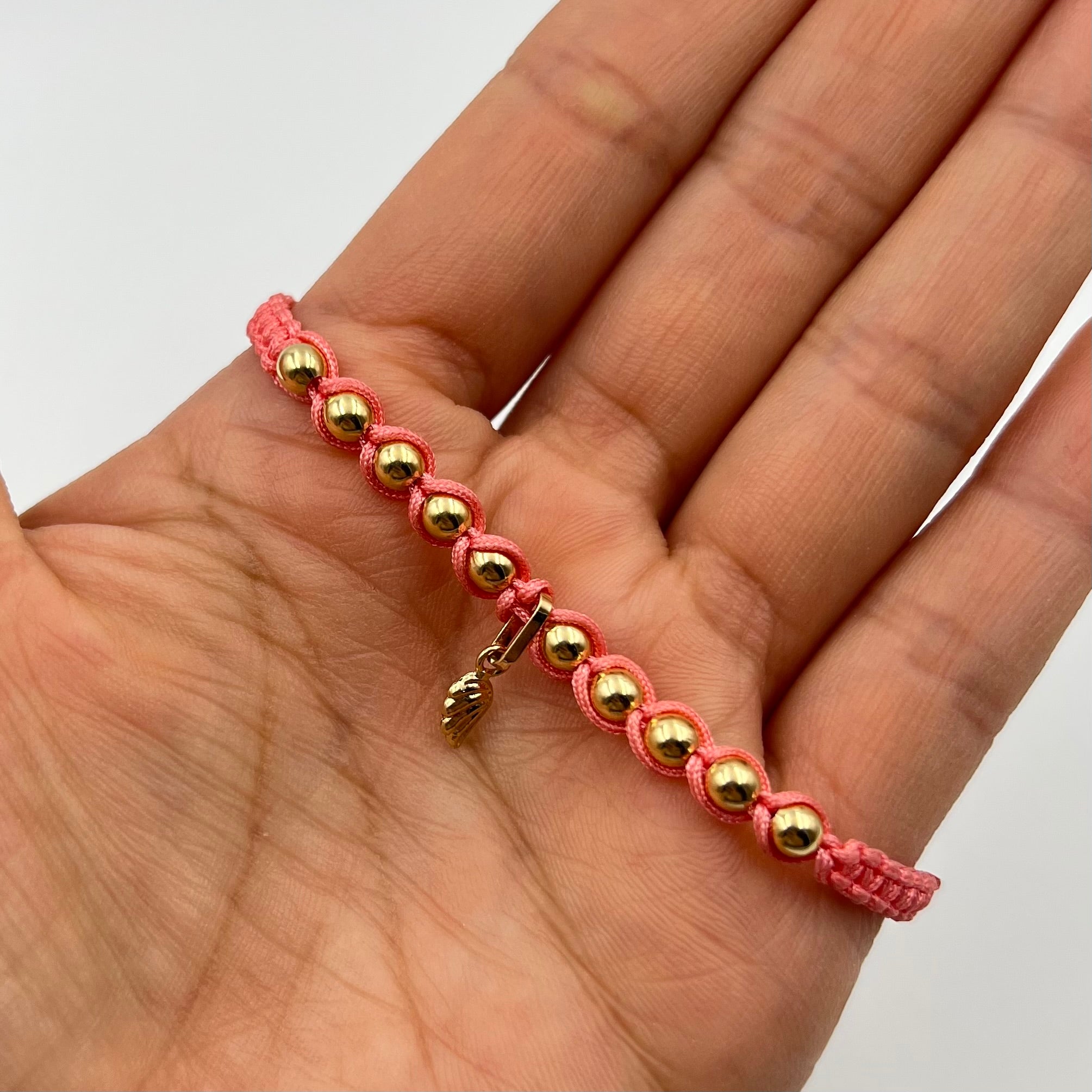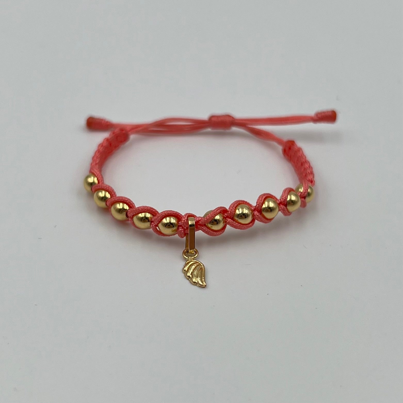 PULSERA TEJIDA SALMON BEBE / DIJE ALA / BOLA LISA 4MM