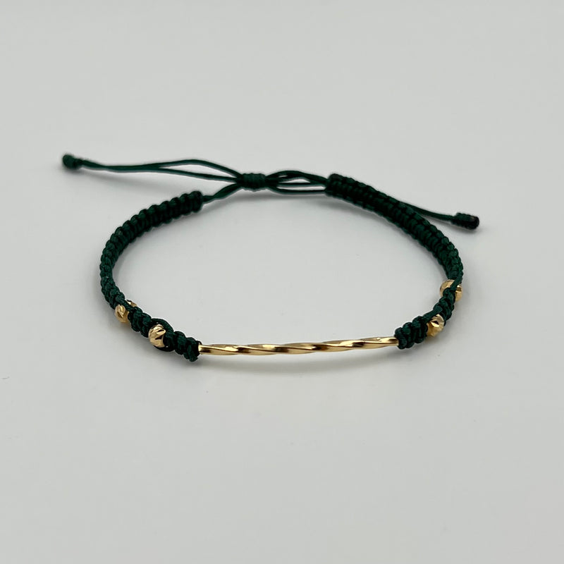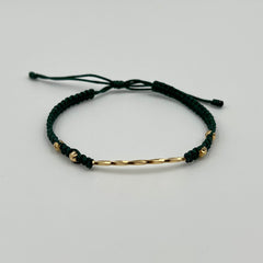 PULSERA TEJIDA VERDE MILITAR / HERRAJE TUBO / BOLA DIAMANTADA 4MM