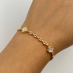 PULSO GC 4MM TREBOL BLANCO ORO AMARILLO 18K +2 / 5,3 GR / 7 MM / 20 CM
