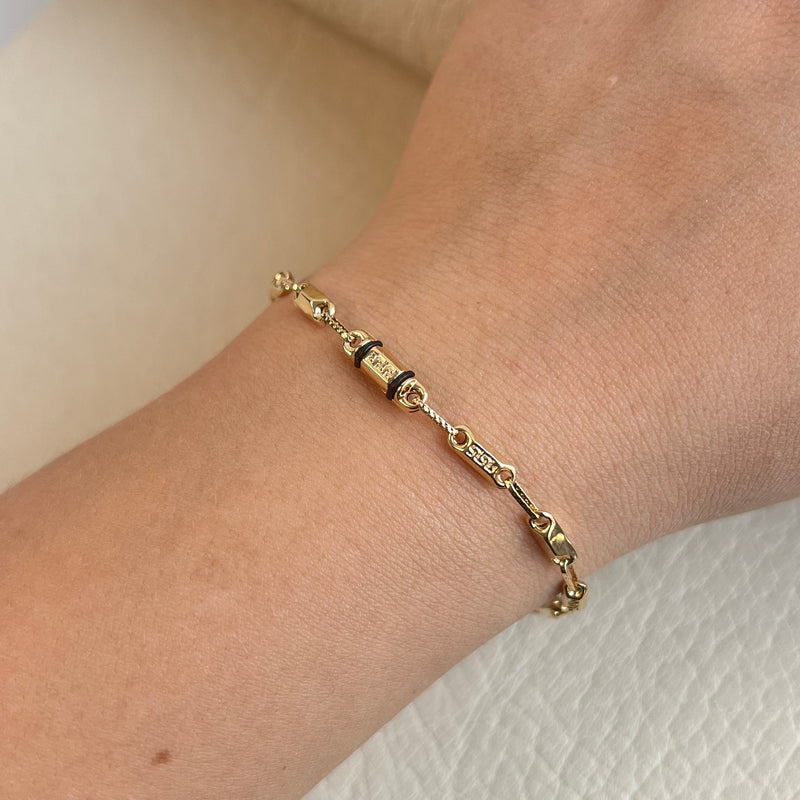 PULSO RUSTICO CAUCHOS BROCHE 0.4 ITALIANO ORO AMARILLO 18K 3,78 GR / 3,8 MM / 21 CM