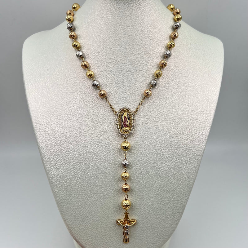 ROSARIO DIAMANTADO TRES OROS 18K 29,53 GR / 7 MM / 60 CM