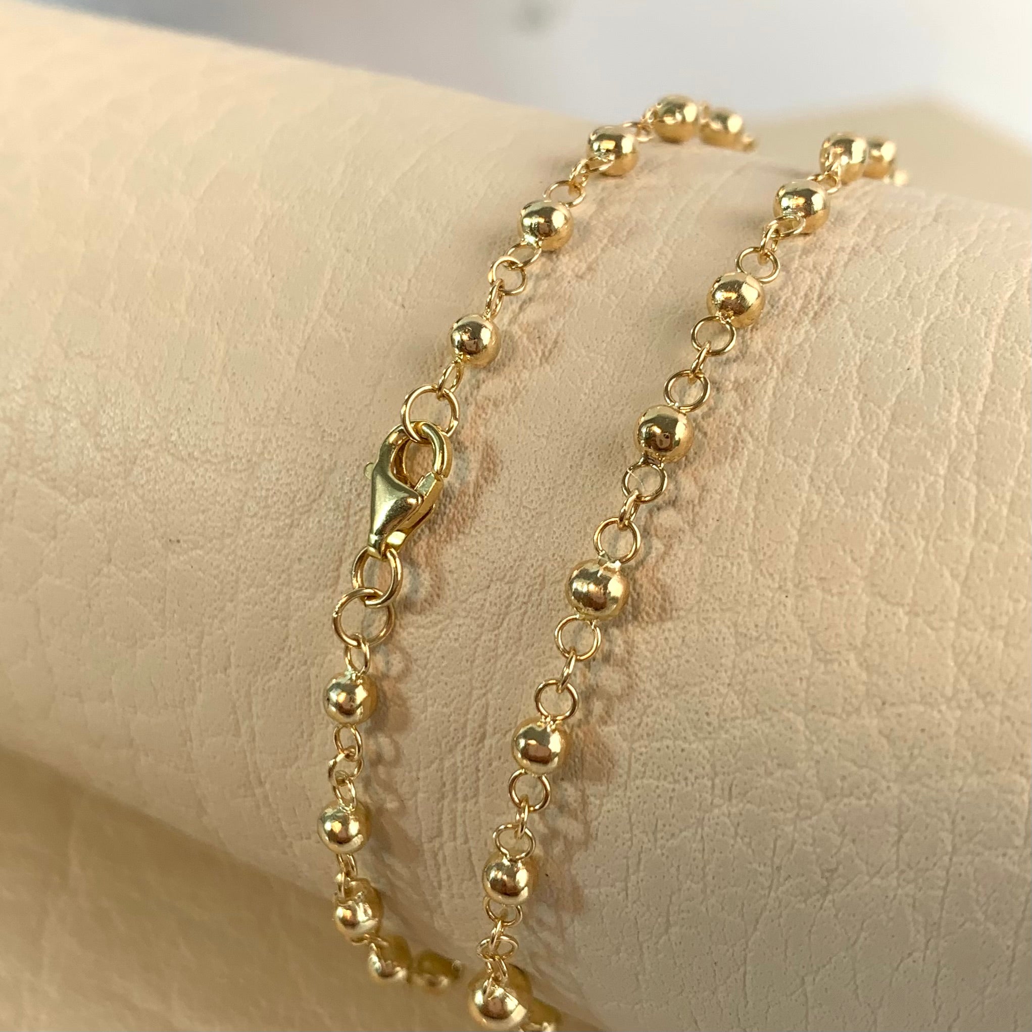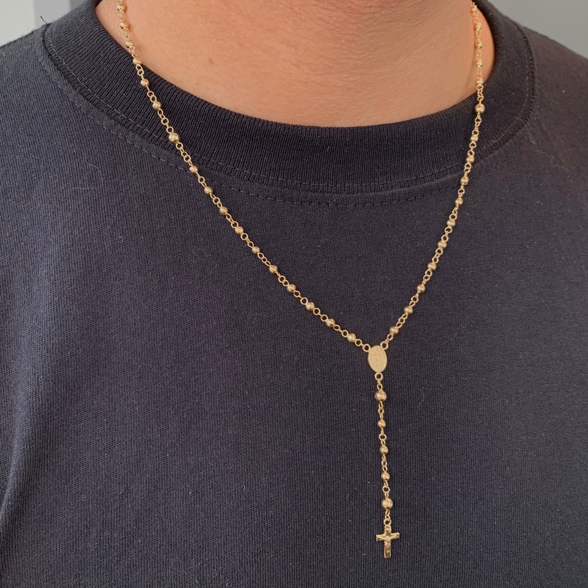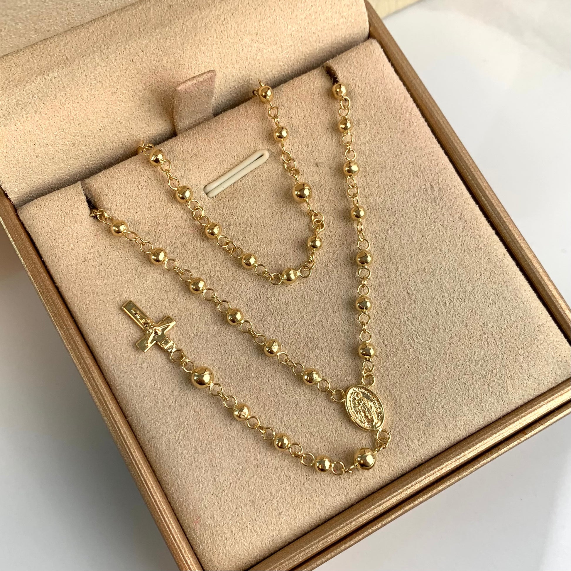 ROSARIO - CAMANDULA VIRGEN MILAGROSA / BOLAS LISAS 3MM - 4MM ORO AMARILLO 18K 6,7 GR / 4 MM / 55 CM