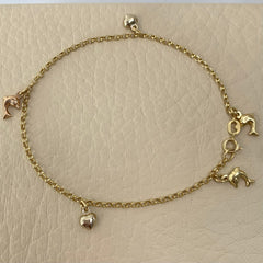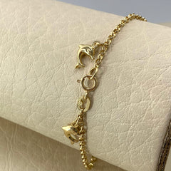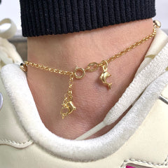TOBILLERA ITALY ROLL ON / DIJE CORAZON - DELFIN ORO AMARILLO Y ORO ROSA 18K +1 / 4,7 GR / 2,3 MM / 24 CM