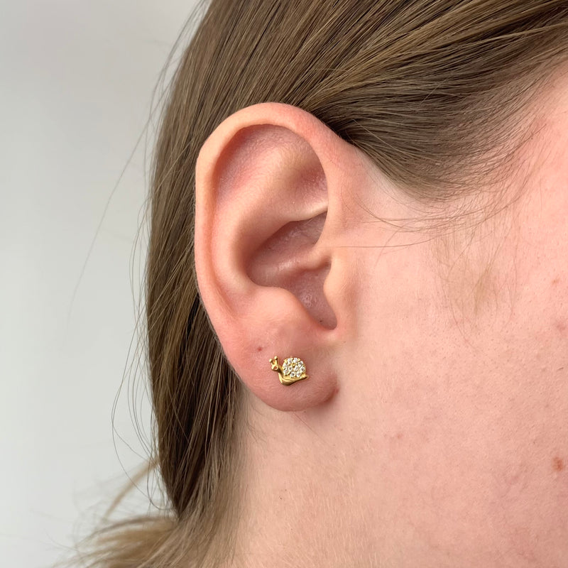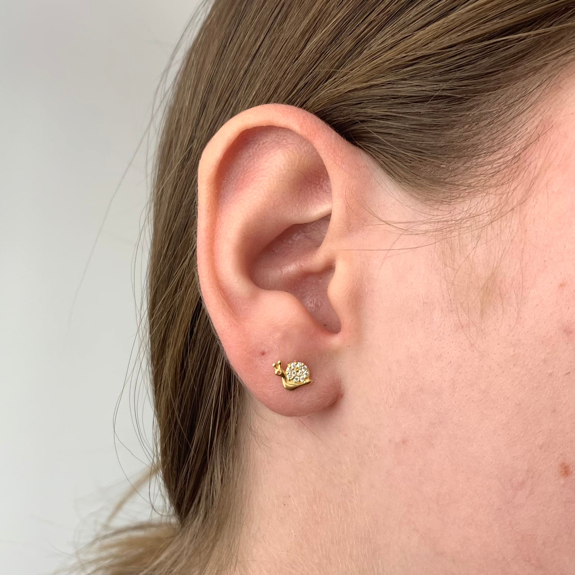 TOPOS CARACOL CIRCONES BLANCOS * ORO AMARILLO 18K 0,8 GR / 8 MM *