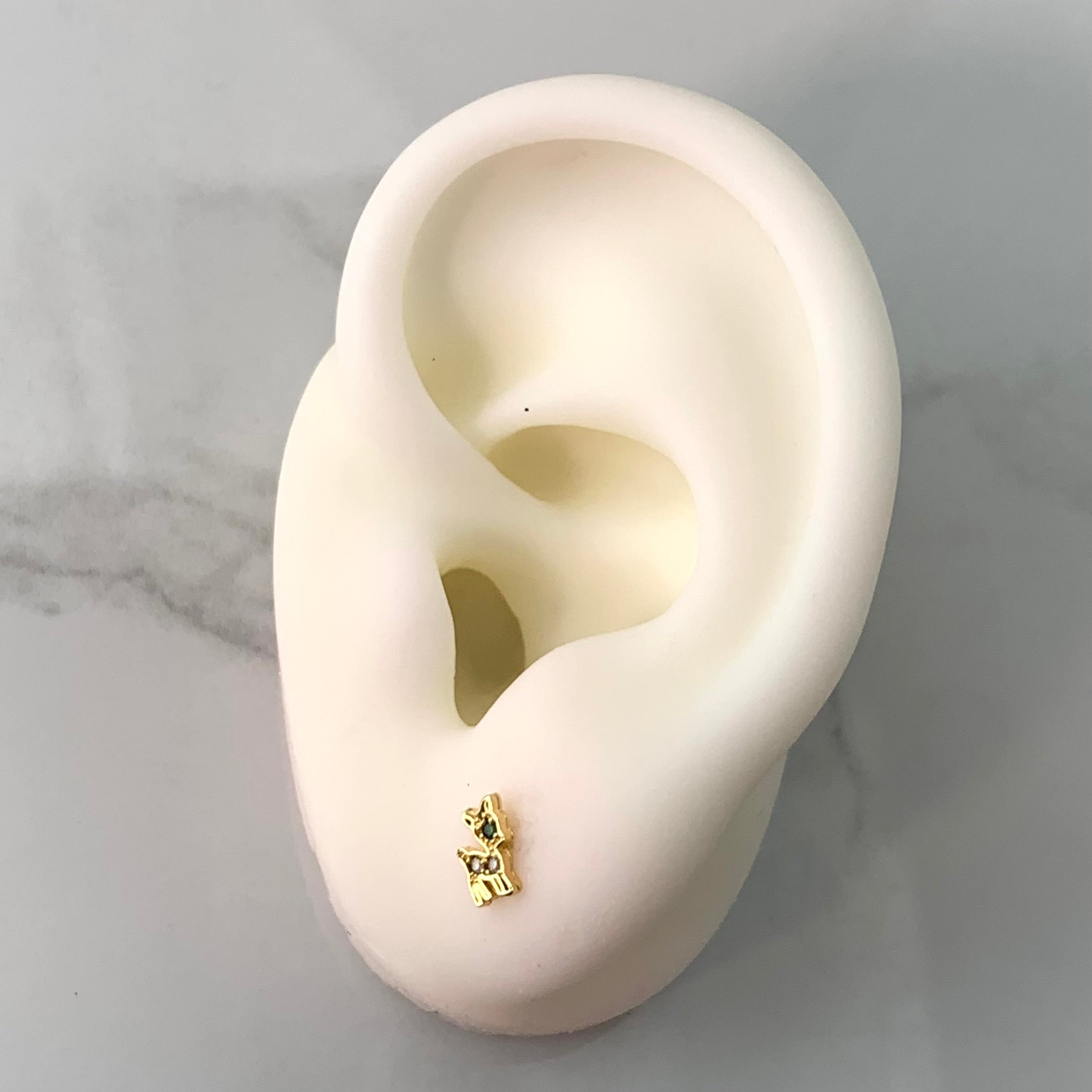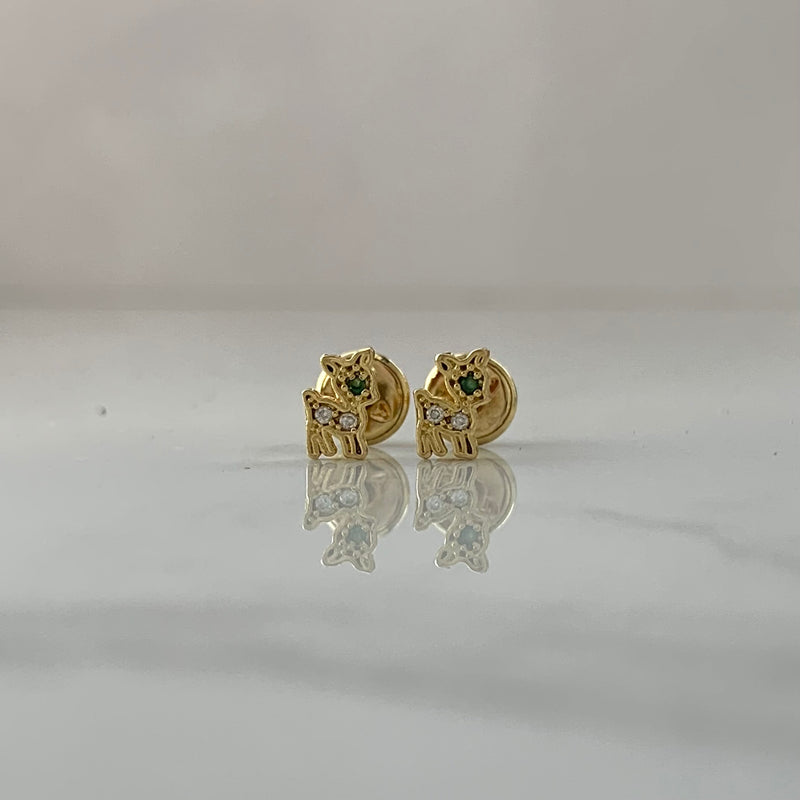 TOPOS VENADO / CIRCONES BLANCOS - VERDE ORO AMARILLO 18K 0,75 GR / 4,3 MM
